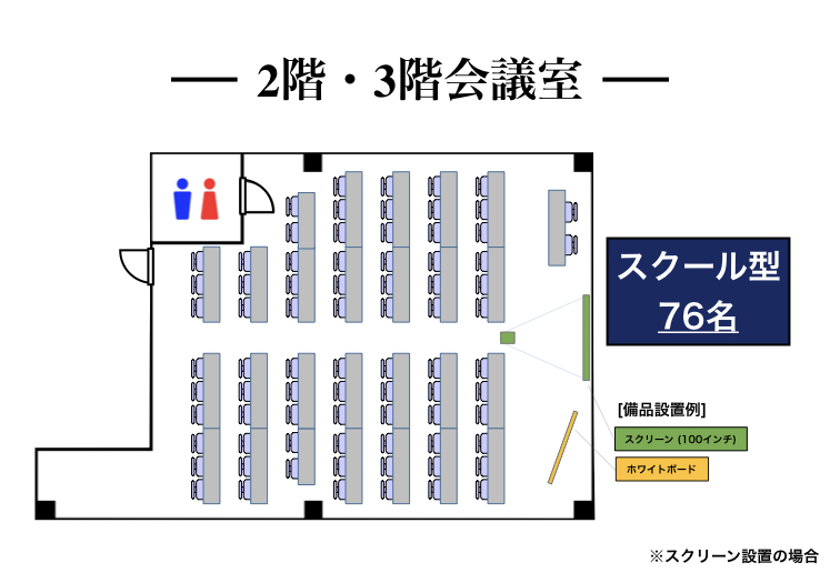 スクール最大70名様まで対応の会議室。