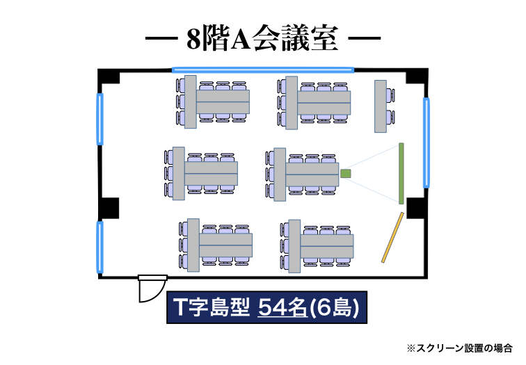 | スクール型 | 口の字型 | コの字型 | T字島型 | I字島型 | シアター型 | 円卓 (MTG only) |