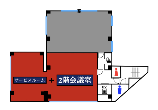 | 2階会議室サービスルーム付き | 115㎡ | 72名 【+36名】 |