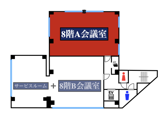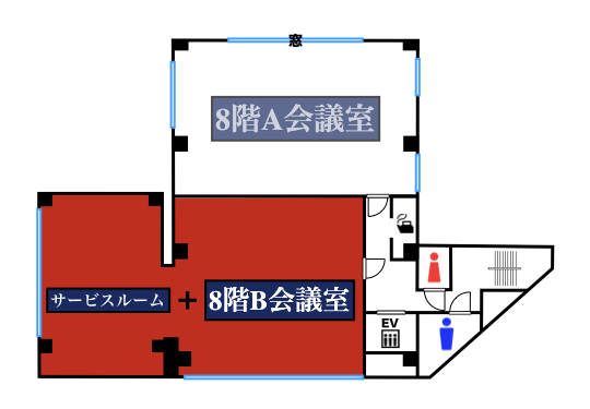| 8階B会議室サービスルーム付き | 115㎡ | 72名 【+36名】 |