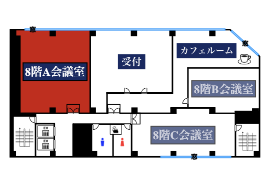 | 8階A会議室 | 130㎡ 39.3坪 |