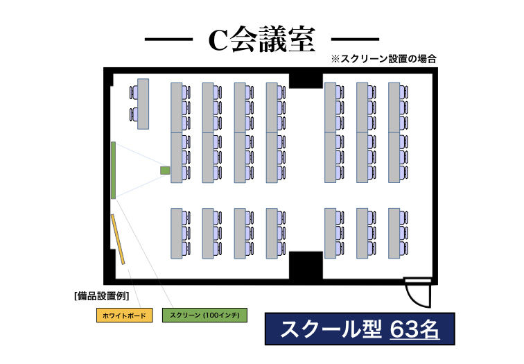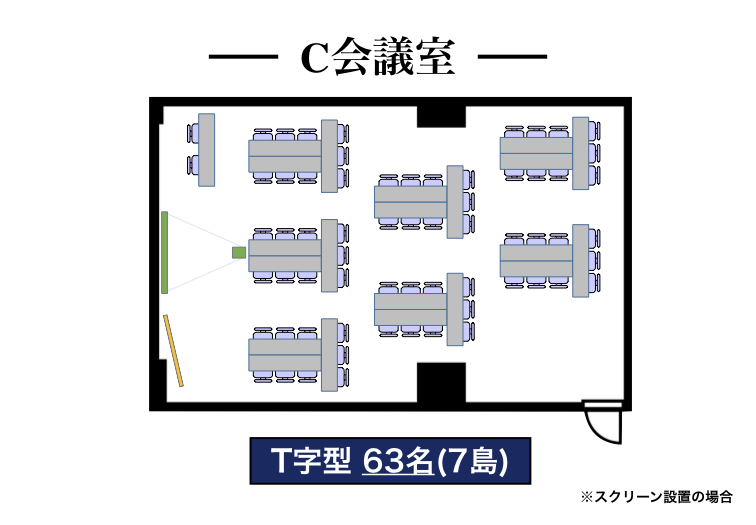 | 3階C会議室 | 78㎡ | 63名 | 42名 | 36名 | 63名 (7島) |