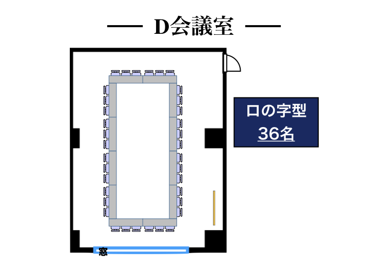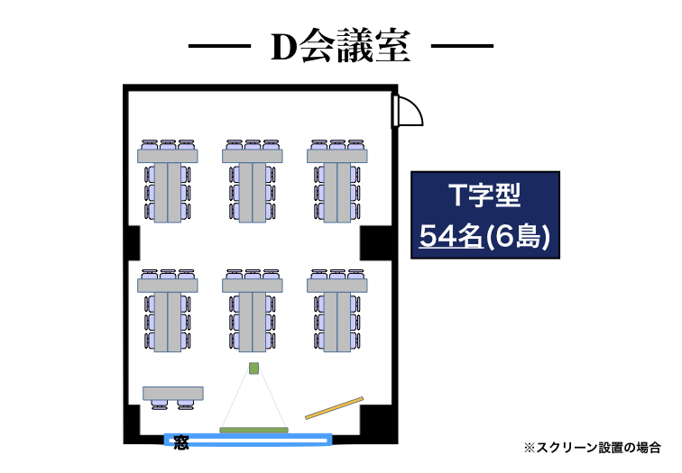 | 3階D会議室 | 80㎡ | 63名 | 36名 | 30名 | 54名 (6島) |
