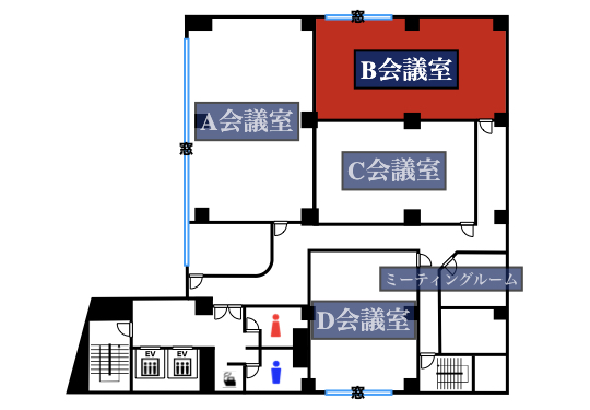 | 3階B会議室 | 96㎡ | 81名 | 48名 | 42名 | 72名 (8島) |