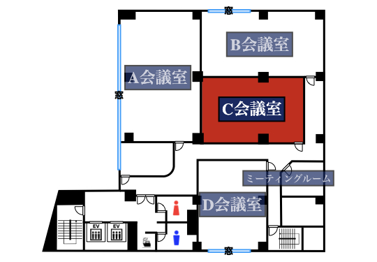 | 3階C会議室 | 78㎡ | 63名 | 42名 | 36名 | 63名 (7島) |