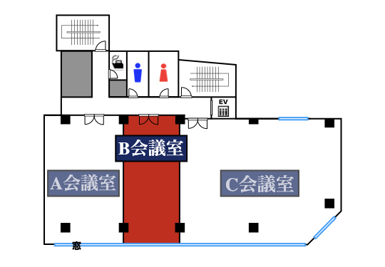 | 6階B会議室 | 55㎡ | 36名 | 30名 | 27名 | 36名 (4島) |