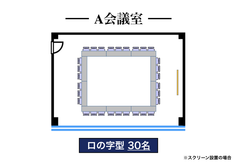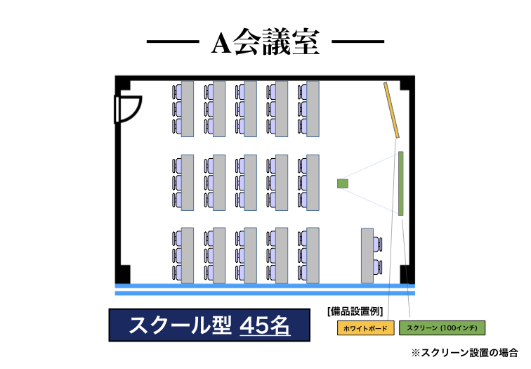 | A会議室 | 59㎡ | 45名 | 32名 | 24名 | 27名 (3島) |