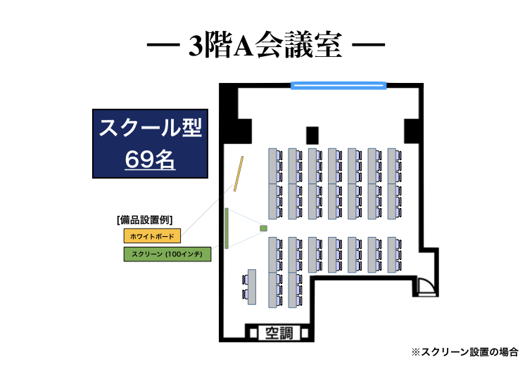 スクール最大69名様まで対応の会議室。