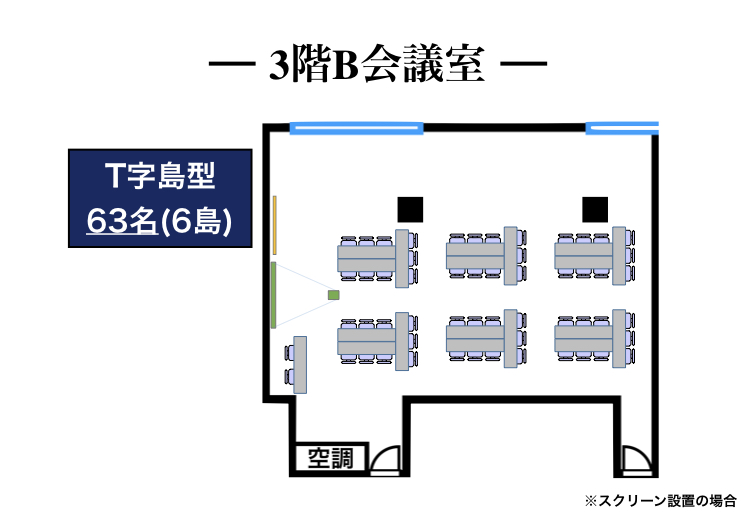 | スクール型 | 口の字型 | コの字型 | T字島型 | I字島型 | シアター型 | 円卓 (MTG only) |