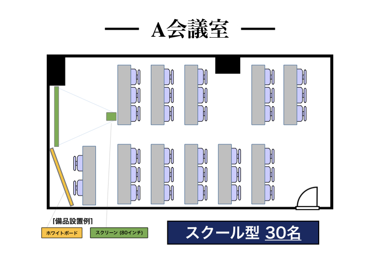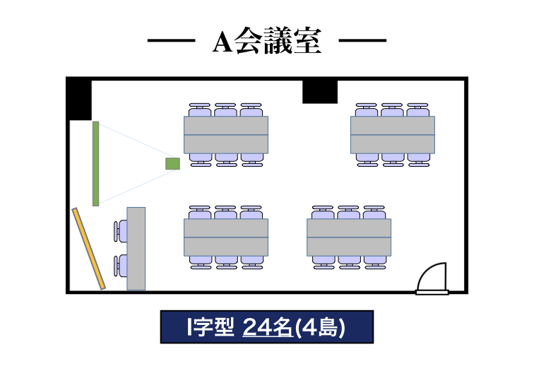 | スクール型 | 口の字型 | コの字型 | T字島型 | I字島型 | シアター型 | 円卓 (MTG only) |