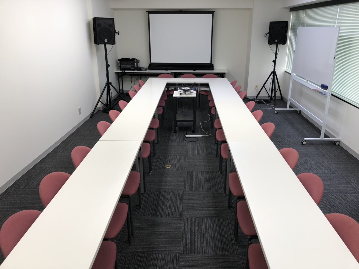 広い無柱のお部屋ですので、スクール・ロの字・グループ等、どんなレイアウトにも対応可能です。