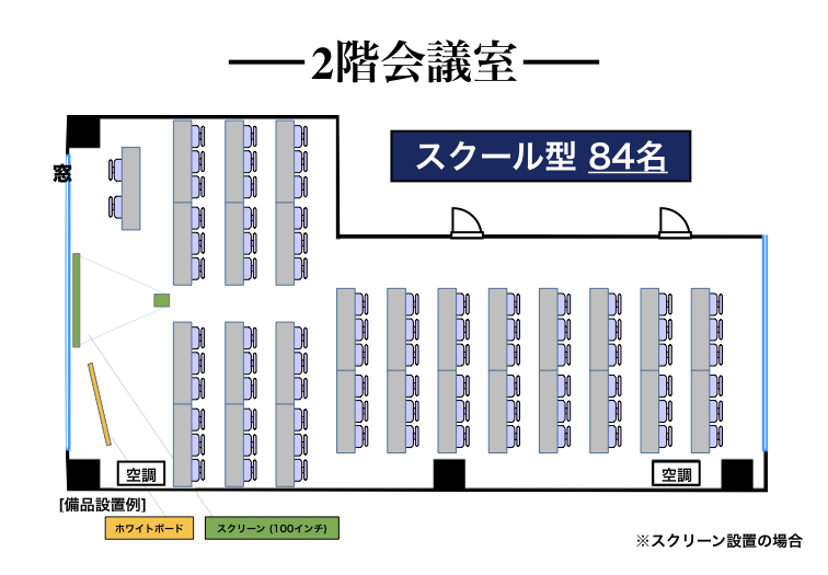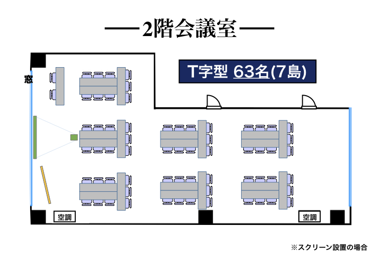 | スクール型 | 口の字型 | コの字型 | T字島型 | I字島型 | シアター型 | 円卓 (MTG only) |
