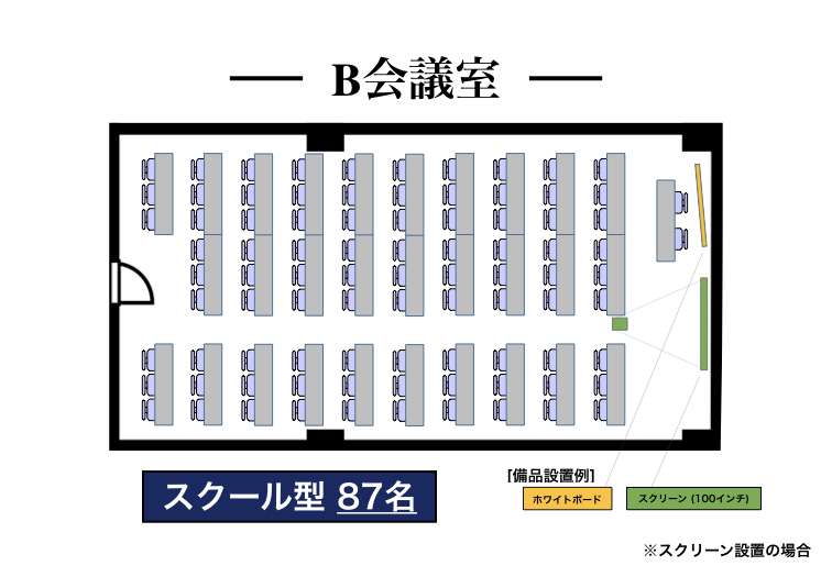 スクール最大87名様まで対応の会議室。