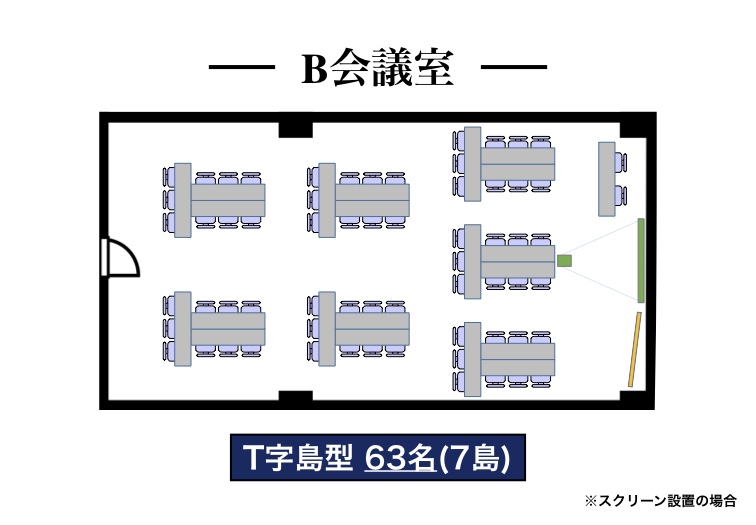 | スクール型 | 口の字型 | コの字型 | T字島型 | I字島型 | シアター型 | 円卓 (MTG only) |